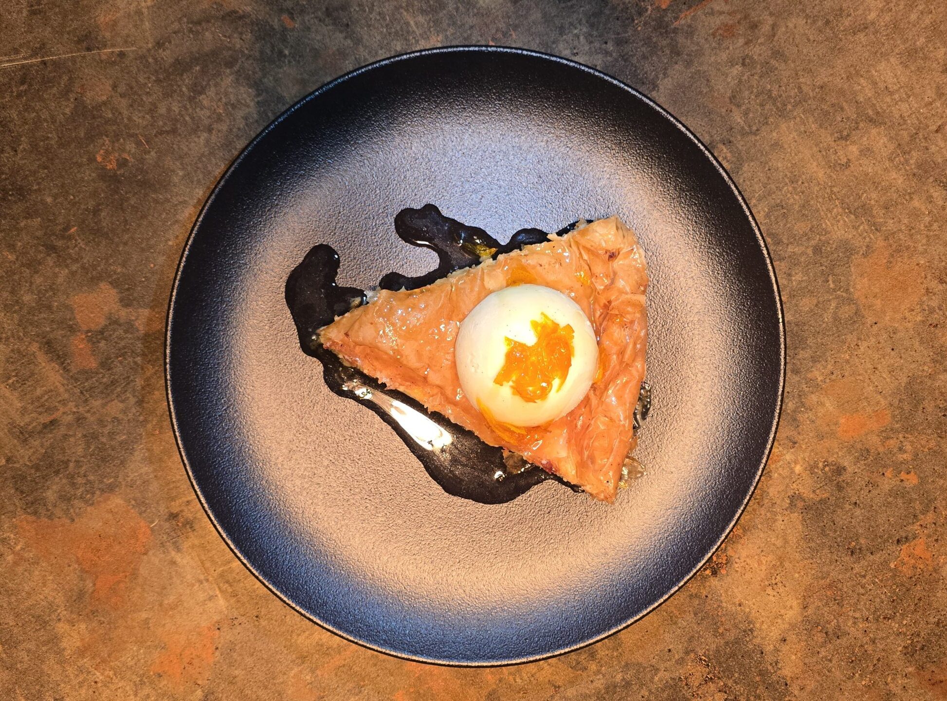 (Φιλέτο Γαλλίας, Μαγιονέζα δυόσμου, Yuzu truffle, Μυρώνια, Πέρλες βαλσάμικου, Αρσενικό Νάξου)