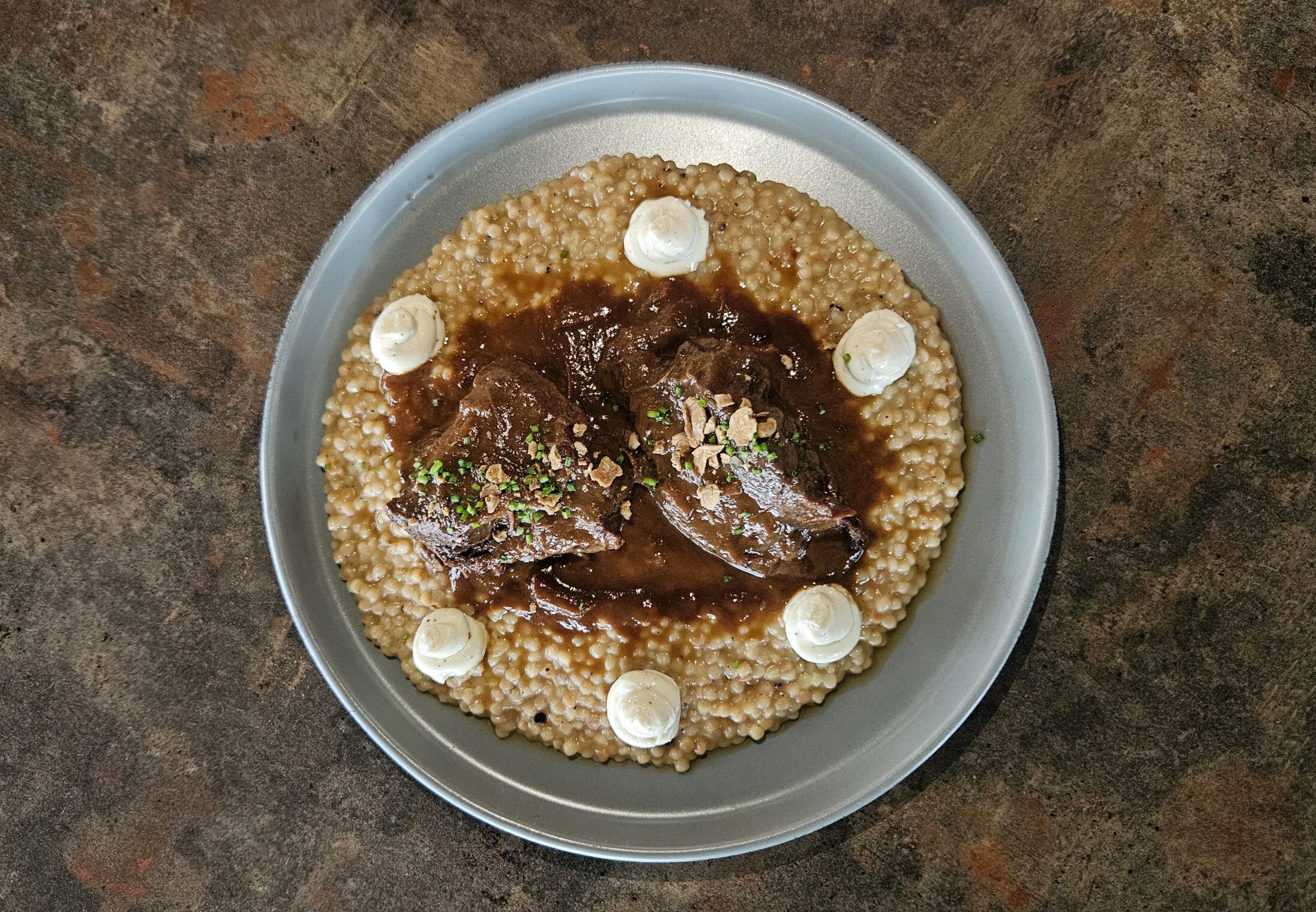 (Φιλέτο Γαλλίας, τσιπς πατάτας, καπνιστή κρέμα τυριού, πουρές αβοκάντο, πίκλα εσαλότ, beuree blanc ντομάτα)